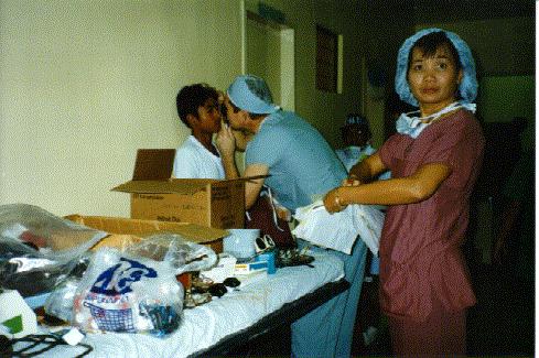 , Dr. Doug Dehning's nurse and assistant. In the background is Neo Rabang.