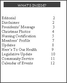 The 2004 PNA Christmas party was held at the Philippine Cultural Center in Overland Park on December 4, 2004. It was a huge success attended by over a hundred people , celebrating with us, our annual Holiday tradition. Even out of state nurses came to visit! . Unique, multicolored, Philippine lanterns decorated the cultural center , setting the festive mood; as the Sampaguita choir, serenaded the Continued on page 4