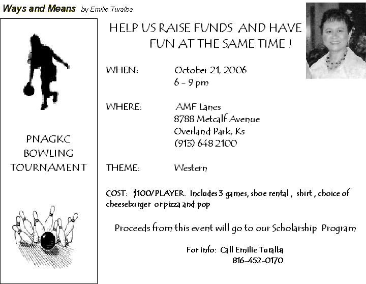 We apologize the omission of the following names of donors during our first Bowling Tournament: