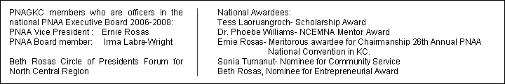 As president elect, attending the leadership training was a great opportunity for me not only to meet the past and present and future leaders and but also to learn the ropes from the seasoned experts whose hard work, dedication and commitment have paved the way and raised PNAA to this level.