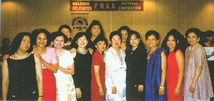 | L-R: Mary Aragon, Irma Labre, Emilie Turalba, Sonia Tumanut and Marilyn Moyo. Back: Emma Florentino and PNAA delegates from New York City. |