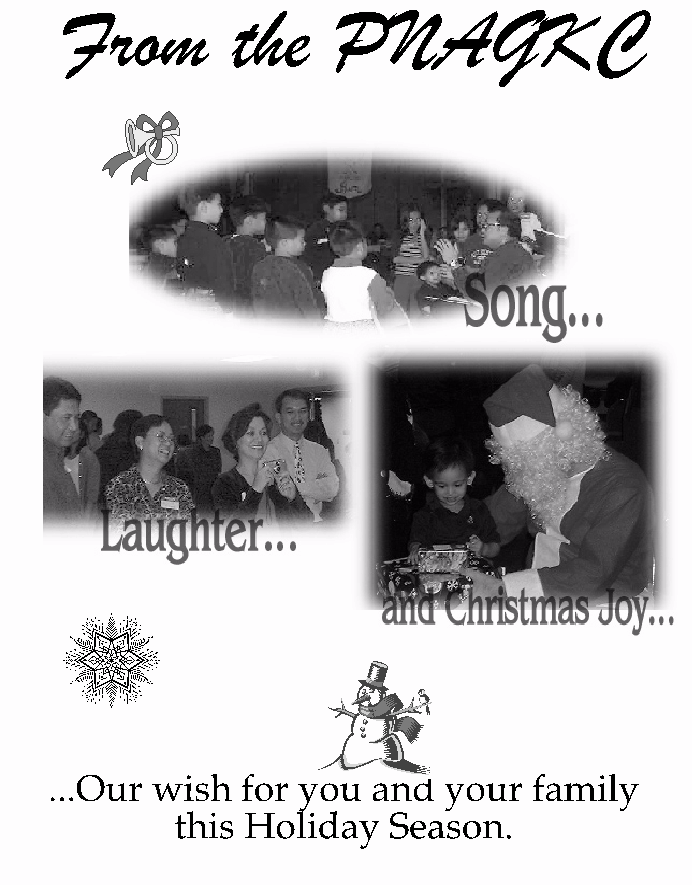 Now that this century is coming to an end, the New Millennium is almost within us; it does represent new and upbeat feelings in our lives. I thank and compliment all of you and your extraordinary efforts over the course of this year. We are always nurses in spirit and in heart. I appreciate all the enthusiasm, dedication and patience most of us have portrayed in this challenging time of our nursing career. The PNAGKC nurses are the most compassionate group of professionals that I have been associated with, and for this I am truly proud.